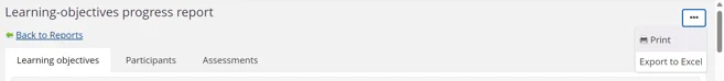 Det är nu möjligt att exportera lärandemål Bedömningsrapport för lärandemål, t.ex. för vidare analys. Exporten finns under "..."-knappen när rapporten öppnas.